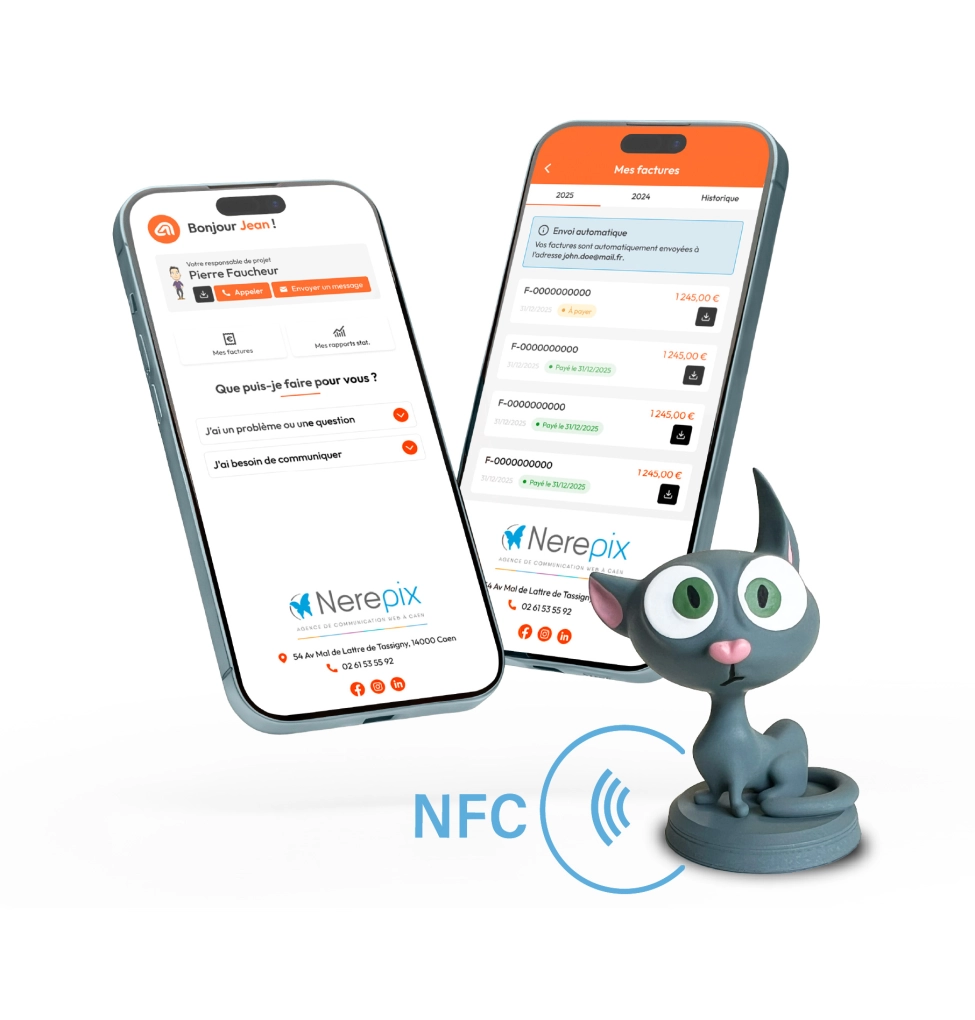 Comment allier web-design, impression 3D et technologie NFC ? Découvrez les coulisses de la création du nouvel outil de communication autour de Ness, notre chat d’entreprise, qui devient LE Ch’assistant Nerepix, un cadeau client innovant né d'une collaboration locale avec Les Communi’Caen et Atome Game.