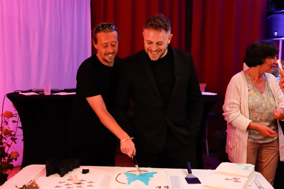 Puis, à 21h30 précises (oui, pour une fois, nous étions pile à l’heure !), nos co-gérants ont pris la parole pour un discours émouvant (mais toujours avec humour bien sûr), avant de souffler les bougies d’un gâteau-papillon 100 % personnalisé signé Vert Framboise. Ce fut aussi le moment d’annoncer les grands gagnants de l’énigme.