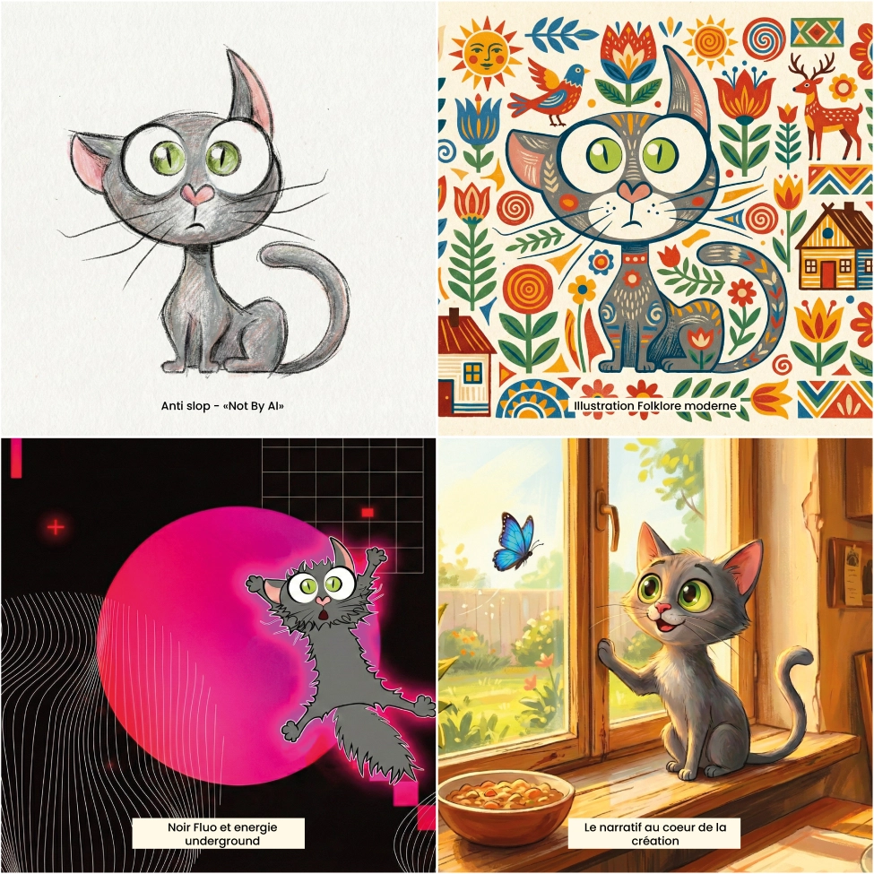 - L’anti-slop & le mouvement "Not by AI" : On assiste à une rébellion contre le "slop"(ces contenus générés à la chaîne qui ont autant d'âme qu'un plat de pâtes sans sel). La tendance est à l’imperfection assumée : un grain de photo marqué, un trait de crayon qui dépasse, une texture papier... Lou souligne d'ailleurs l'émergence de ce contre-mouvement : "C’est une revendication du geste humain. On affiche fièrement le 'Not by AI' pour éviter la saturation numérique et redonner de la valeur à la technique pure."